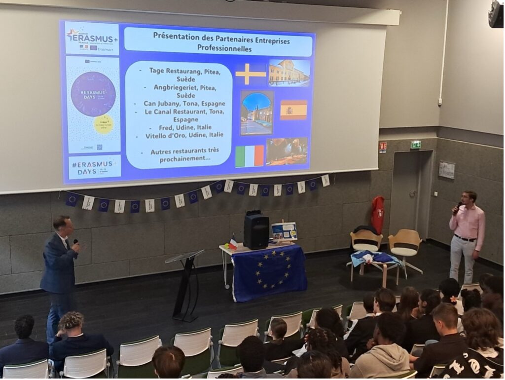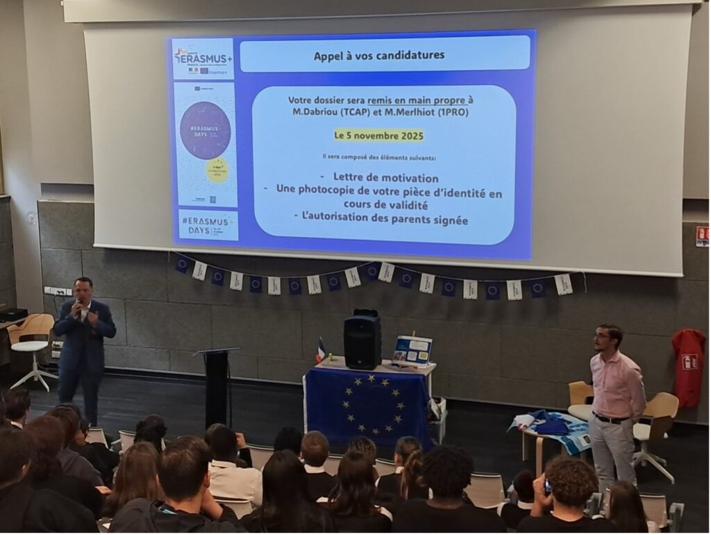 Ce fut aussi l’occasion de présenter l’appel à candidatures pour la mobilité Européenne qui aura lieu en juin 2026. Merci à nos 2 anciens élèves, Liam et Lucas, ayant participés à une mobilité il y a 2 ans, de s’être rendue disponible pour cette belle occasion.