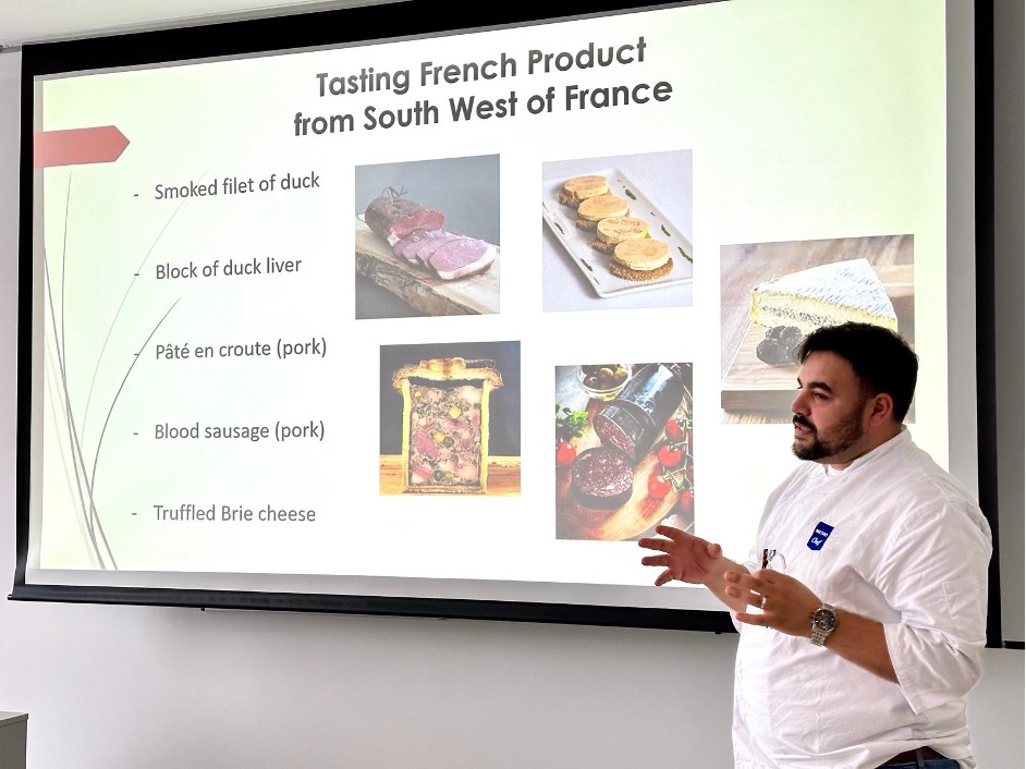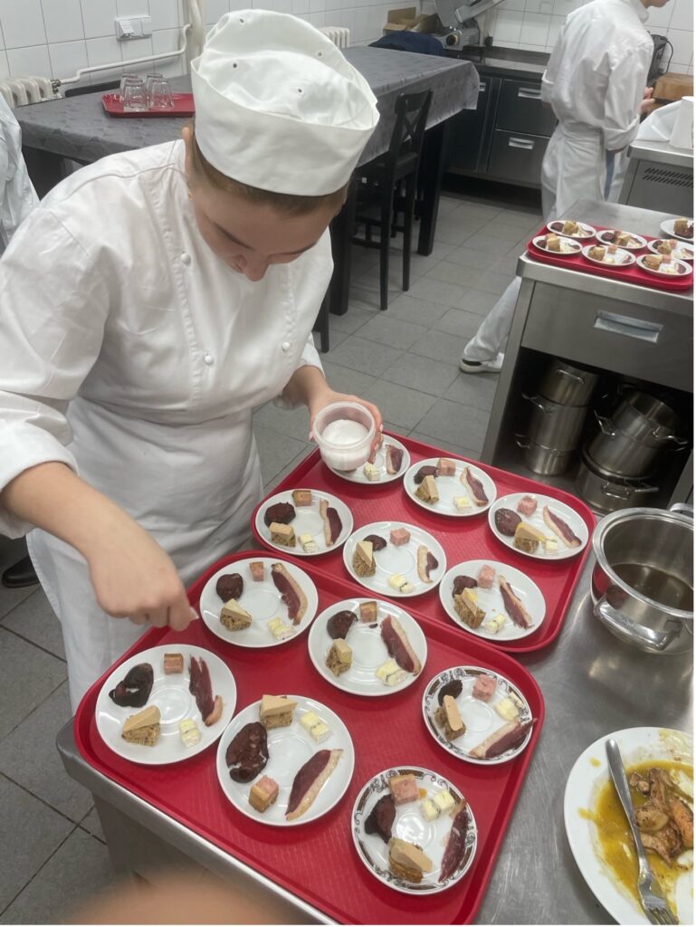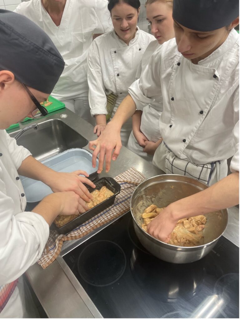 Nous avons également animé une masterclasse pour les élèves de 3eme et 4eme année avec la réalisation d’un foie gras, ainsi qu’une dégustation de produits français tel que le Lillet, le brie truffé, le pâté en croûte, le boudin noir, le magret de canard séché/fumé. Un bel échange gastronomique que nos partenaires Tchèques ont vraiment apprécié.